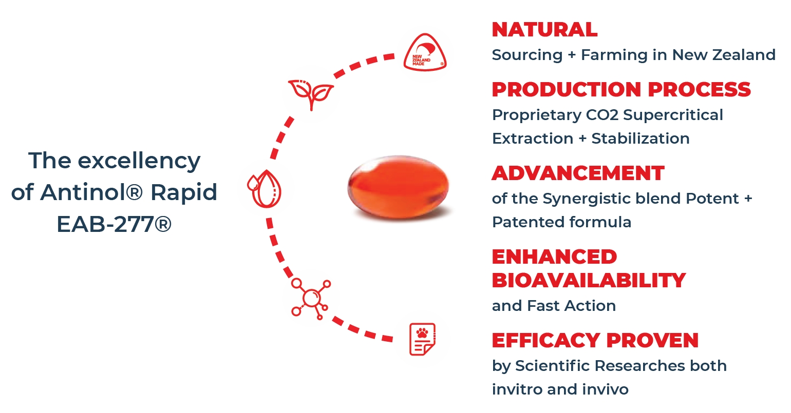 Antinol® Rapid is a potent synergistic blend of 2 marine lipid extracts chosen for their unique enhancement formula called EAB-277®.